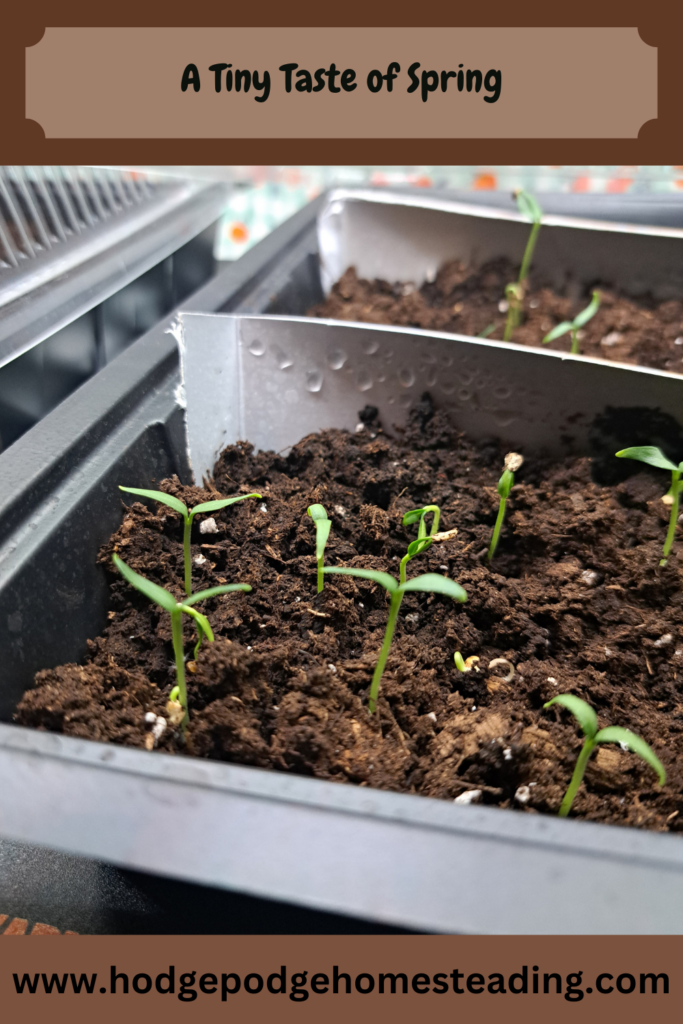 I’m usually pretty easygoing about Winter, but by the end of February even I’m starting to need a break. Since it was just barely late enough for me to start a few of the seeds that need the longest before the first frost, out came the seed starting supplies and in came the first taste of Spring!