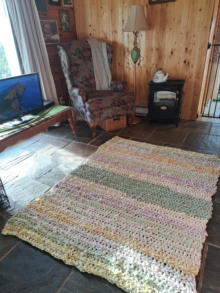 Remember that chair full of fabric cabbages? They have magically transformed into a rug!